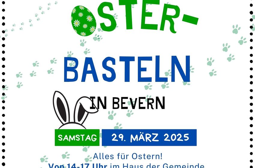 Am Samstag, 29. März 2025 von 14 - 17 Uhr wird im Haus der Gemeinde, Hauptstr. 29 in Bevern wieder alles rund um Ostern gebastelt und gestaltet. Und eine neue Osterkerze für die Kirche müssen wir ...