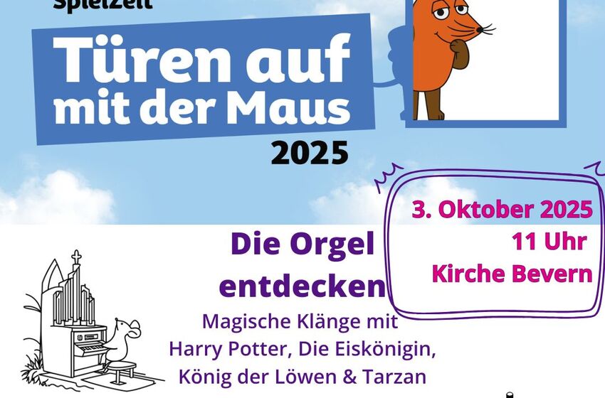 Die Orgel ist ein faszinierendes Instrument – riesig, vielseitig und voller Überraschungen. Wenn sich der Maus-Türöffner-Tag und die Orgelentdeckertage am 3. Oktober in Bevern treffen, öffnen ...
