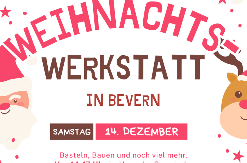 Am Samstag, 14. Dezember 2024 von 14 - 17 Uhr laden wir wieder alle Kinder ab dem letzten Kita-Jahr in unser Haus der Gemeinde, Hauptstr. 29 in Bevern ein. Jüngere Kinder können gerne mit ihren ...